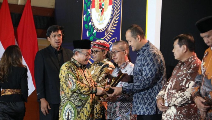 Penghargaan diserahkan langsung Menteri Pendidikan Dasar dan Menengah RI, Abdul Mu’ti, kepada Wakil Bupati Badung, Bagus Alit Sucipta, di Hotel Borobudur Jakarta, Senin (1/12).