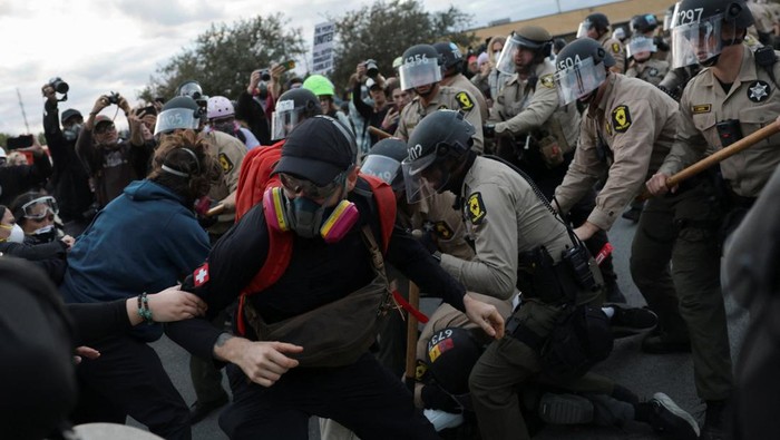 Bentrok Warnai Aksi Protes di Fasilitas Imigrasi ICE Broadview, Chicago By adminPosted on 12/10/2025Jakarta – Bentrok pecah di aksi protes dekat fasilitas ICE Broadview, Chicago. Demonstran desak reformasi imigrasi.Baca Juga“Wanita Tewas Ditemukan Tewas Terikat di Kamar Hotel Palembang”Share this:Related posts:Ahmad Luthfi Sebut Pesisir Jateng Punya Potensi Besar untuk Gaet InvestorJaksa Ungkap Riza Chalid Dicap sebagai ‘Trader Migas’ di Dakwaan AnaknyaBentuk Jembatan ‘Donat’ Dukuh Atas Masih Dikaji, Target Diresmikan 2027Baca Juga“Kebakaran di Pabrik Nikel Morowali Dipicu Percikan Las, 3 Pekerja Terluka”