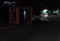 Tak Kuat Nanjak, Truk Pengangkut Pupuk Subsidi di Pandeglang Terguling