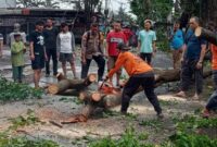 Pohon Tumbang Akibat Hujan Deras di Limo Depok, Lalin Macet