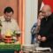 Megawati Soekarnoputri, Presiden ke-5 RI, hadir dalam pertunjukan teater seni musik Indonesia-Uzbekistan di Gedung Kesenian Jakarta bersama dengan tokoh-tokoh politik terkemuka.