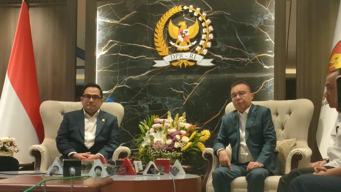 “Mengadakan pertemuan terbatas antara pimpinan DPR kemudian pimpinan Komisi II, mewakili pihak pemerintah dalam hal ini ada Mensesneg. Adapun pertemuan terbatas pada hari ini kita membicarakan ada dua hal, yaitu mengenai masalah UU Pemilu dan wacana yang beredar di masyarakat tentang UU Pilkada,” ujar Dasco dalam pertemuan.