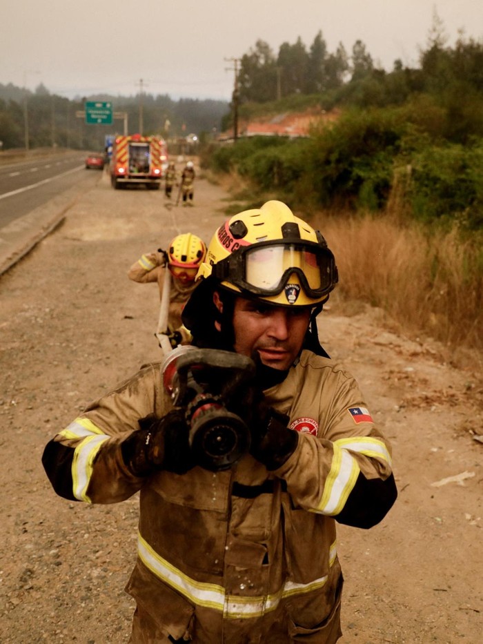 Chile – Kebakaran hutan besar melanda wilayah Concepcion, membakar kawasan permukiman, serta memaksa warga dievakuasi saat petugas berjibaku mengendalikan api.