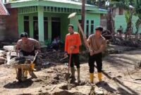 • Polisi dan Warga Kompak Bersihkan Lumpur-Kayu Sisa Banjir di Gayo Aceh