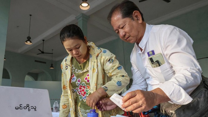 Pemilu Myanmar Digelar, Warga Antusias Datangi TPS di Kyauktada