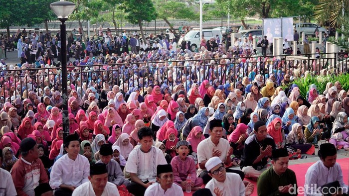 Jakarta – Ribuan warga berkumpul di Masjid Raya KH. Hasyim Asy’ari, Jakarta, untuk doa bersama jelang setahun pemerintahan Prabowo. Warga memohon berkah dan kekuatan.