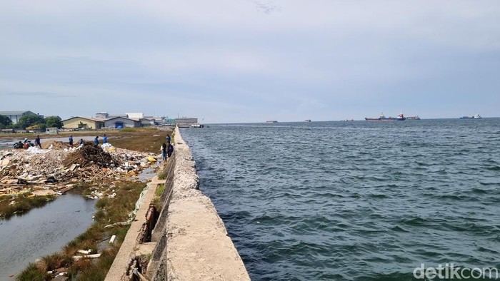 Dia menjelaskan panjang tanggul ini sekitar dua kilometer. Lima ratus meter di antaranya merupakan milik PT Pelindo. Katanya, tanggul ini sudah berdiri 10 tahun sehingga kondisi mulai menurun.