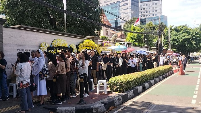 Kedutaan Besar Vatikan di Jakarta memberi kesempatan kepada warga untuk menyampaikan doa dan belasungkawa atas meninggalnya . Warga pun antre di depan Kedubes Vatikan untuk menunggu giliran menyampaikan belasungkawa.
